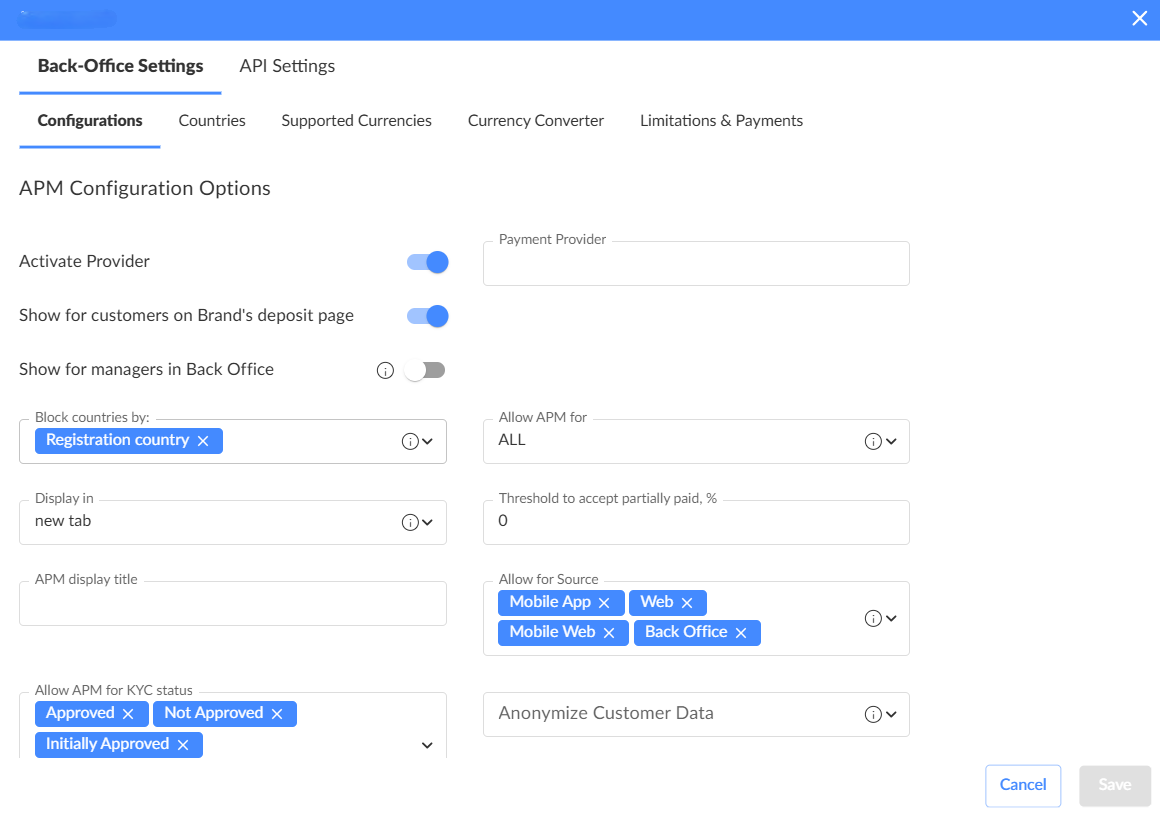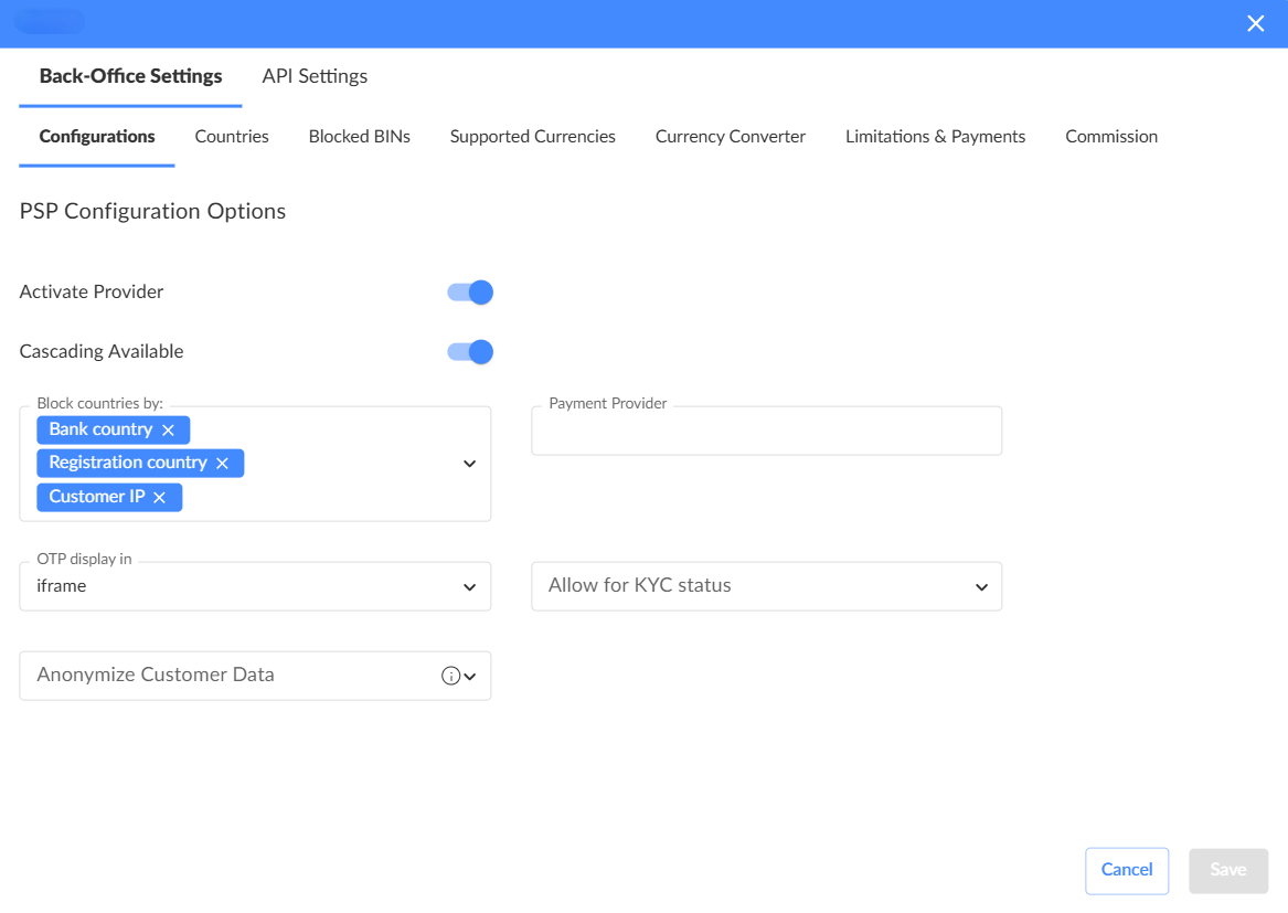 This feature is available for both PSP and APM providers. Set it up individually for each payment provider.
