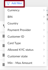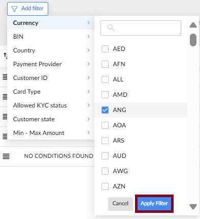 - BIN country: Choose the country where the customer's bank is registered. Multiple options can be selected.