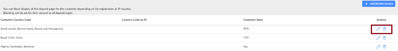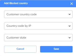 - Click Add Blocked Country in the top-right corner.