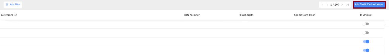 Click Add Credit Card as Unique in the top right to manually assign a card to a customer ID.