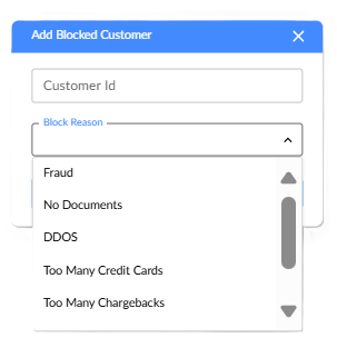 - Click the Add Blocked Customer button.