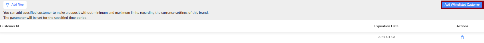 - Click Add Whitelisted Customer to add a new customer.