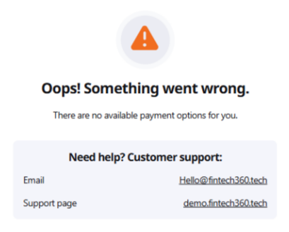 Once blocked, the customer will not be able to make any deposits and will see the following error message: "There are no available payment options for you."